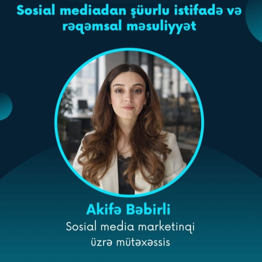 Bakı Avrasiya Kollecində sosial media marketinqi üzrə mütəxəssis Akifə xanımın iştirakı ilə “Sosial mediadan şüurlu istifadə və rəqəmsal məsuliyyət” mövzusunda maarifləndirici görüş keçiriləcəkdir.