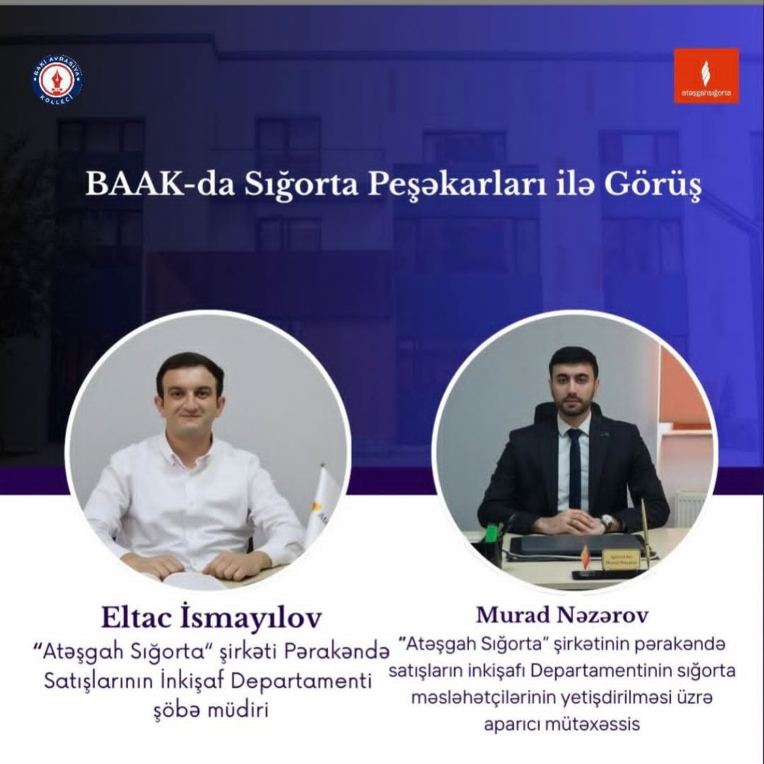 “Atəşgah” Sığorta Şirkətinin Pərakəndə Satışların İnkişafı Departamentinin şöbə müdiri Eltac İsmayılov və Sığorta məsləhətçilərinin hazırlanması üzrə aparıcı mütəxəssis Murad Nəzərov tədbir çərçivəsində çıxış edəcəklər.