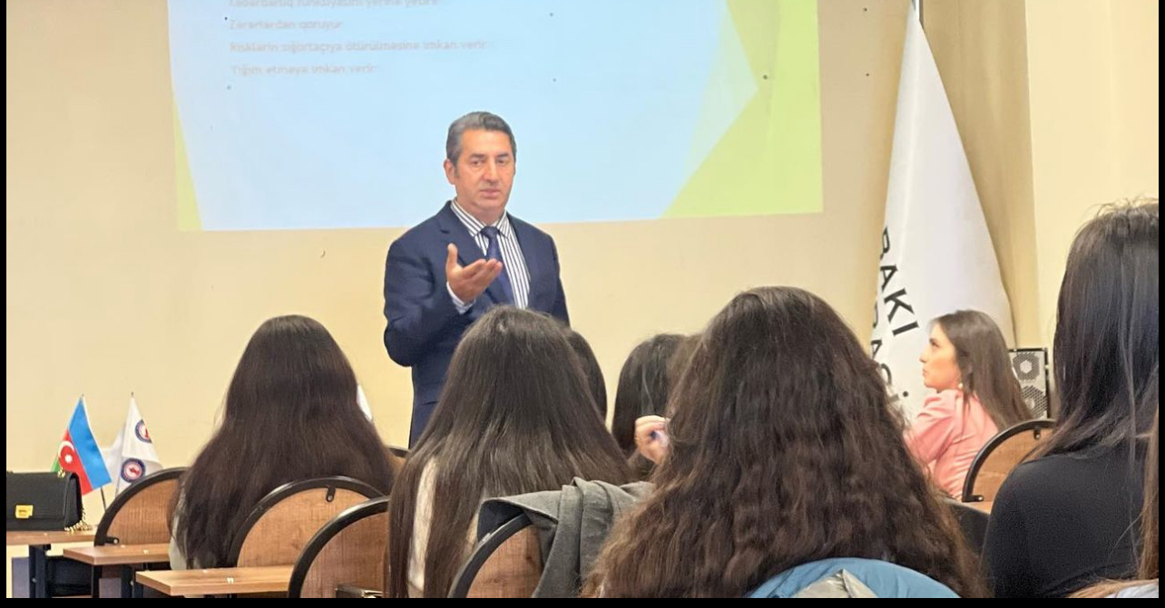Azərbaycan Sığortaçılar Assosiasiyasının Təlim Mərkəzinin direktoru Pərviz Quliyev ilə BAAK "Sığorta işi" ixtisası üzrə təhsil alan tələbələrlə 2 saatlıq təlim çərçivəsində görüş keçirilib. Təlimdə "sığorta agentindən, mütəxəssisə doğru yol", tələbələrə müvafiq ixtisas üzrə lazım olan nəzəri və praktiki biliklərdən söz açaraq, iştirakçıların sualları cavablandırlmaqla, interaktiv formada davam edib.