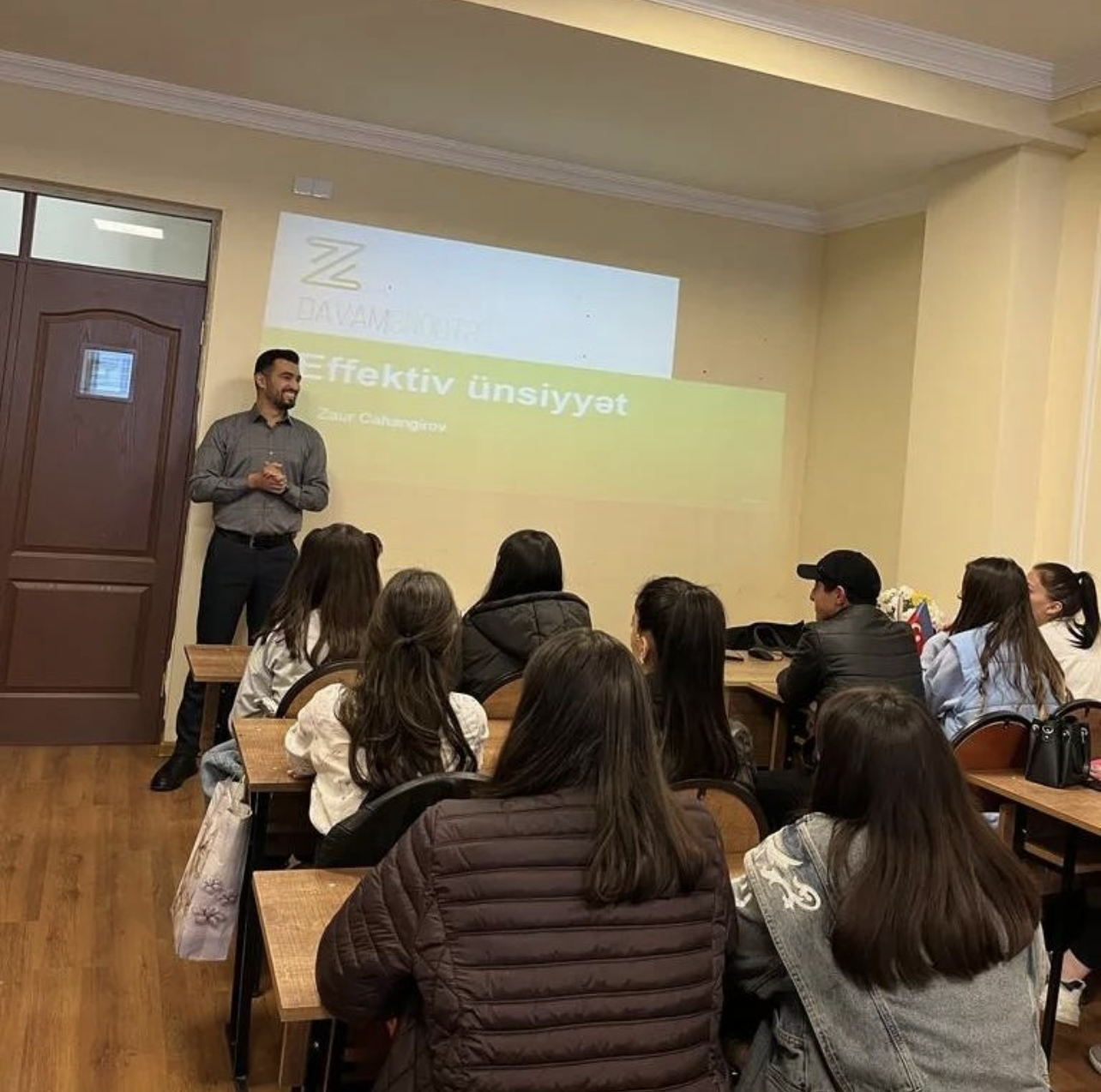 BAAK tələbələrin əmək bazarına hazırlaşma prosesini dərinləşdirmək və sürətləndirmək məqsədilylə bir neçə istiqamətdə silsilə təlimlərə start verib. Baş tutan ilk təlim “Natiqlik və ünsiyyət” üzrə təlimçi Zaur Cahangirovun təqdimatında “Effektiv ünsiyyət”mövzusunu əhatə edirdi. 120-ə yaxın tələbənin iştirak etdiyi təlim təhsilalanların böyük marağına səbəb olub.